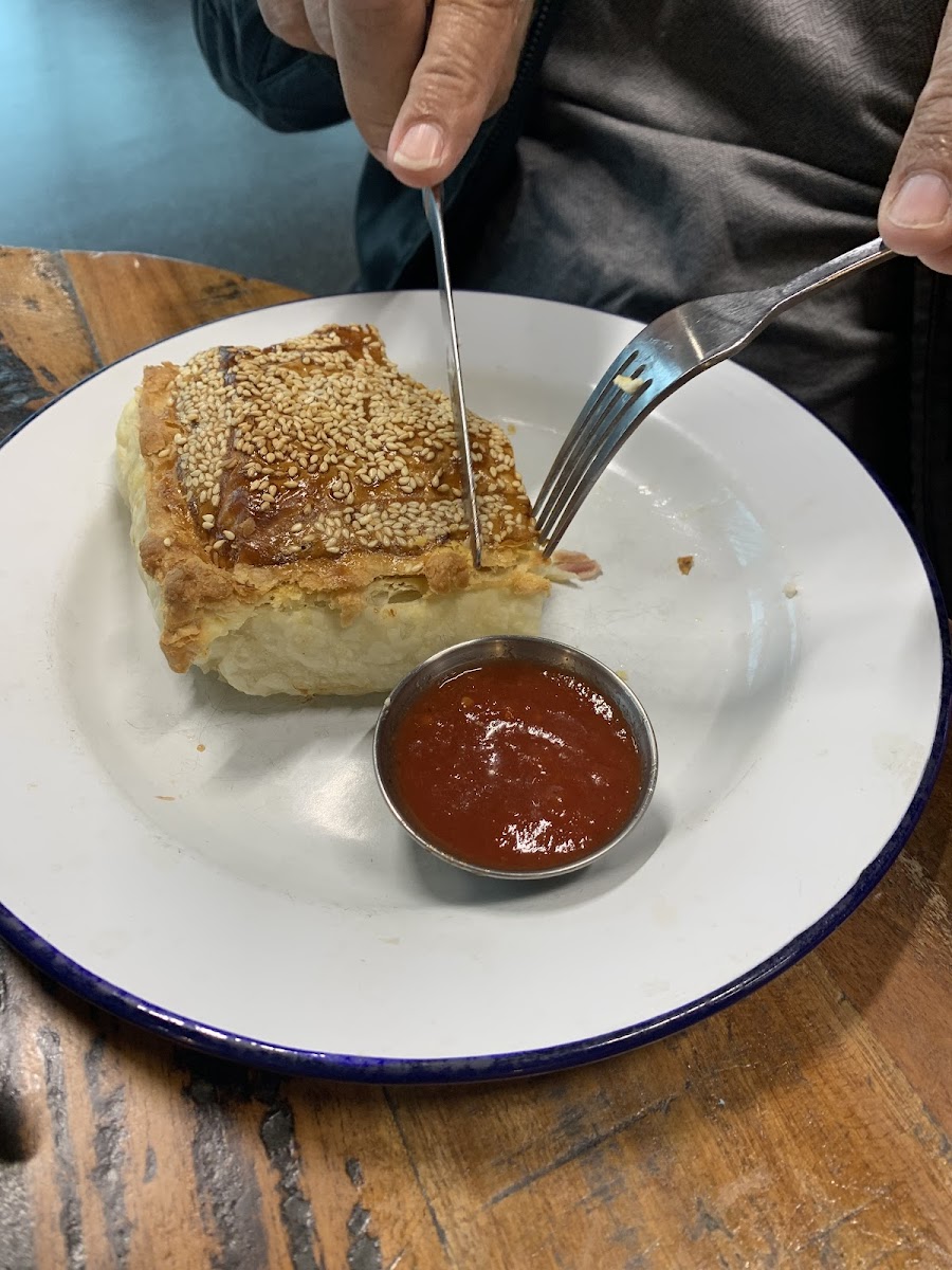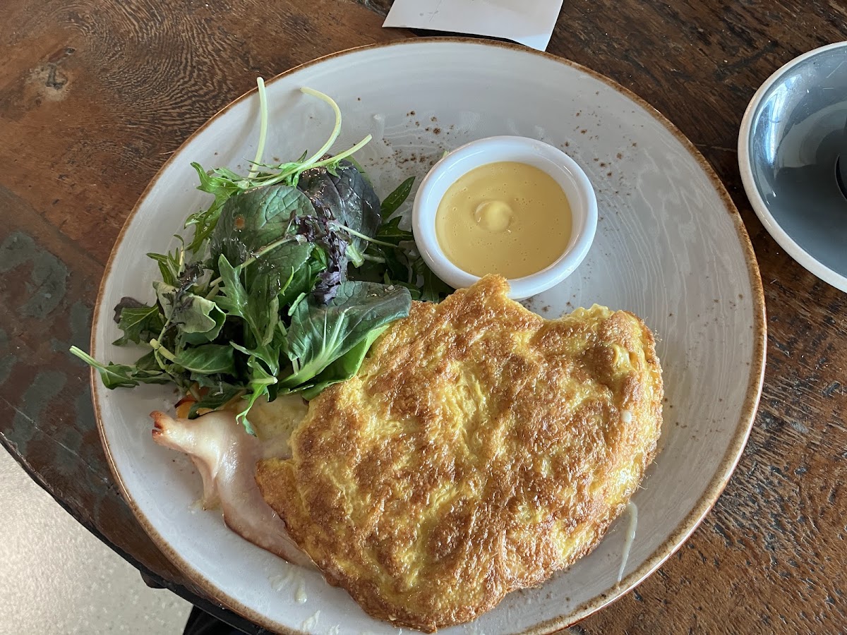 The food menu leans on classic breakfast items, with standouts like the bacon and egg pie and scrambled eggs topped with hollandaise sauce. While some ingredients such as avocado and halloumi may not always be available, the kitchen offers comfort-style items including ham and cheese omelettes and a variety of fresh sandwiches and croissants that suit straightforward, casual dining. The chocolate ice shake is a notable sweeter option that fits well for families or those wanting something cold and indulgent before their flight.